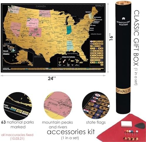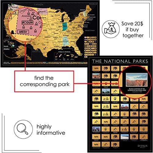 2 in 1 Gift Set – Scratch off US Map and 63 National Parks Poster – 24×16 Easy t…