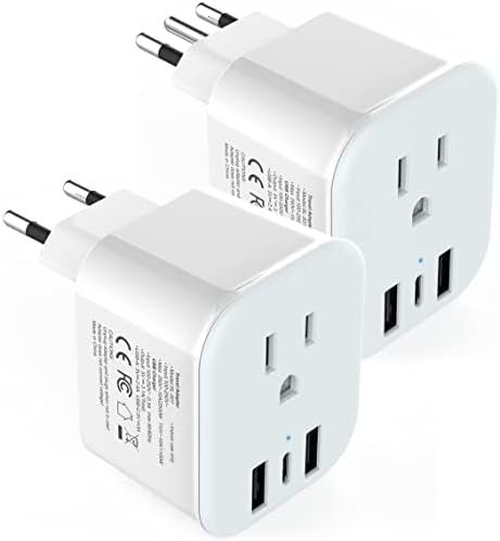 2 Pack European Travel Plug Adapter, LANUEE Italy Power Adapter with USB C Port,…