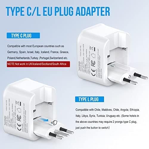 【US to EUROPE ITALY TRAVEL PLUG ADAPTER】Type-C Type-L 2 in 1 travel plug adapter is compatible with most european countries, such as Austria, Belgium, Croatia, Denmark, Finland, France, Germany, Spain, Turkey, Iceland, Israel, Switzerland, Amsterdam, especially for Italy, Chile, Maldives and Angola, etc. You can see more in the description Multi-country list. Type c and type L European adapter can be switched by your needs. (Note: Not WORK in UK/Ireland/Scotland).