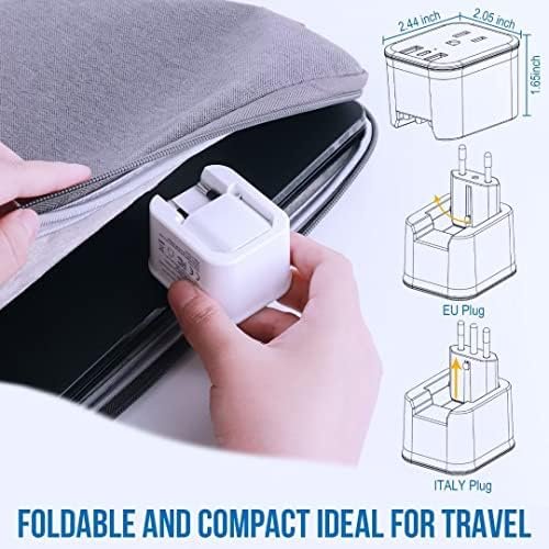 【FOLDABLE and COMPACT DESIGN】Unique foldable design,Type c and type L international plug adapter for European can be switched freely. the size is mini: 2.44*2.05*1.65 inches. A small US to Europe italy plug adapter saves space in your suitcase, making it a travel essential during your EU trip and business without having to carry extra adapters and power strips. LED indicators allow You know the power on/off.