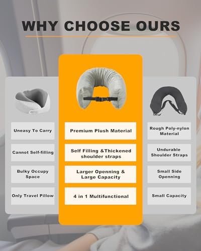 【Travel Essentials】 Travel smart with this unique carry-on companion that provides extra storage without baggage fees when you fly. Enjoy plush neck and lumbar support on airplanes, car road trips, trains, and even as a handy carrier on bikes and motorcycles! Travel neck pillow stuffable with clothes