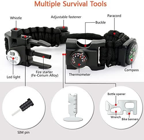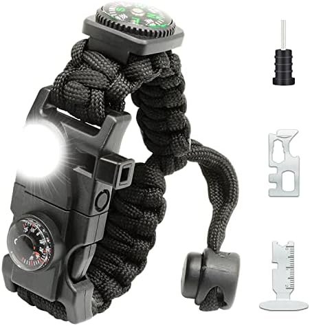 20 in 1 Survival Paracord Bracelet Adjustable Gear Kit with SOS LED Light, Fire …