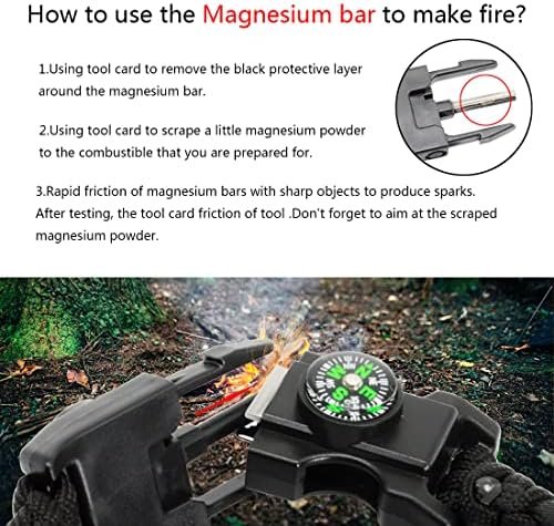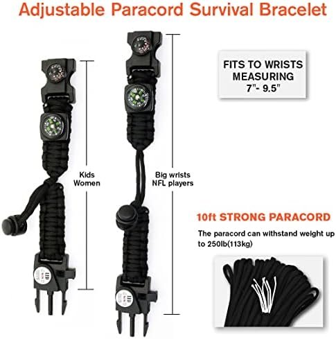 【10ft Paracord Bracelet & Thermometer】:The paracord can withstand weight up to 550lb (249kg); paracord bracelet can be loosen up to 10 feet in any situation when strong rope or cordage is needed. Good to stabilize a tent to build a shelter, create hunter traps, hiking rope and so on. Thermometer is ideal to know local real-time temperature quick(in Celsius)