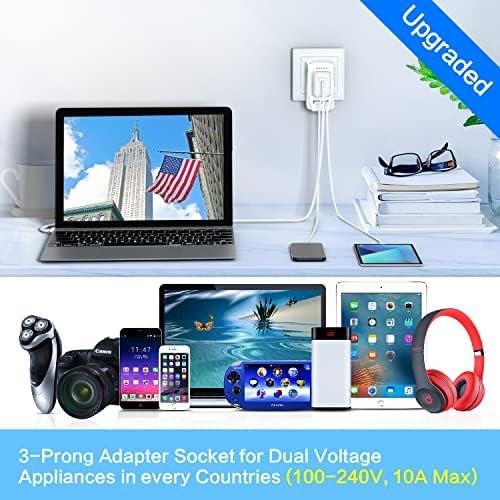 Plugs Worldwide Used:The adapter is with US/EU/UK/AU worldwide plugs (each supports 10A Max). Powering your devices in Australia, North America, United Kingdom, India more than 200 countries, Easy your journey.