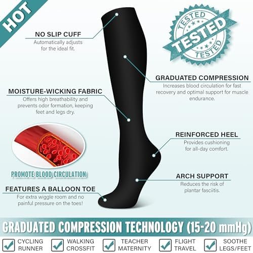 3 Pairs Compression Socks for Women & Men 15-20 mmHg- Best Support for Nurses, R…