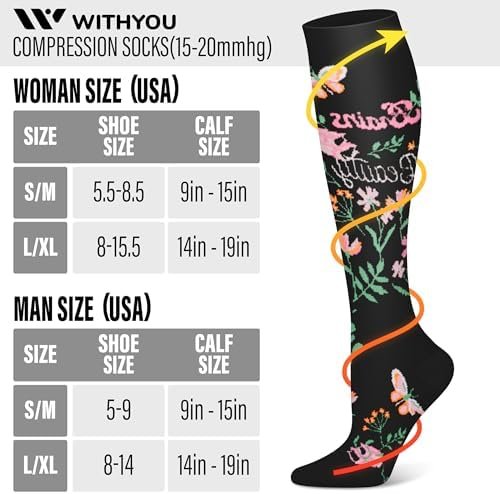 3 Pairs Compression Socks for Women & Men 15-20 mmHg,Best Support for Nurses Run…