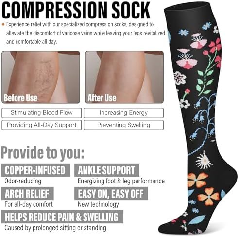 OUR SOCKS WILL DO A LOT MORE: Improving blood circulation,swelling and fatigue prevention,muscle soreness reduction.Help relieve pain related to plantar fasciitis.Offers optimal muscle support during everyday activities.Choose these socks for routine wear to feel relieved,restored and satisfied!