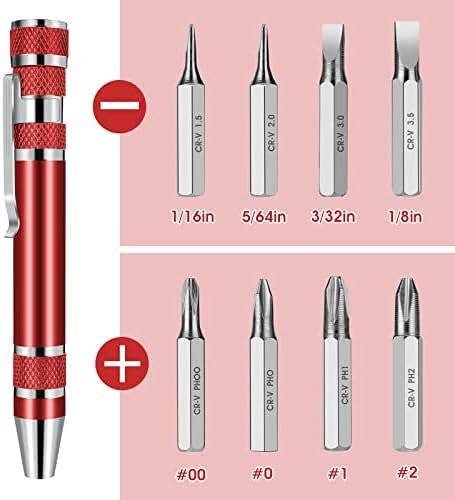 8 IN 1 TOOL SET : the package includes 4 pieces pen screwdrivers and each mini screwdriver includes 8 screwdriver head kits with magnetism, including 1/ 16 inch, 5/ 64 inch, 3/ 32 inch, 1/ 8 inch, #00, #0, #1 and #2, enough quantity and different bits to meet your various needs