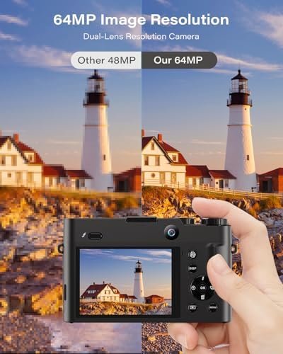Superior 64MP Resolution Dual Camera for Photography: With an impressive 64MP image resolution, this 4K digital video camera with dual lenses ensures every precious moment is captured in stunning detail. Whether it’s a family reunion or a romantic sunset, each photo becomes a vivid memory to cherish forever. Ideal for cameras for photography enthusiasts who want to preserve life’s finest details.