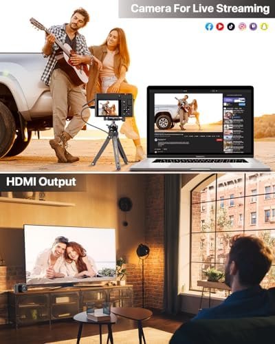 Webcam Live Streaming and HDMI Output: Stream directly to YouTube and other platforms with ease using this vlogging camera, bringing your live moments to a wider audience. Additionally, the HDMI output lets you view your photos and videos on a TV screen, perfect for sharing with family and friends. Ideal 4K digital camera for content creators looking to expand their reach and engage their audience in real-time during blogging and vlogging activities.