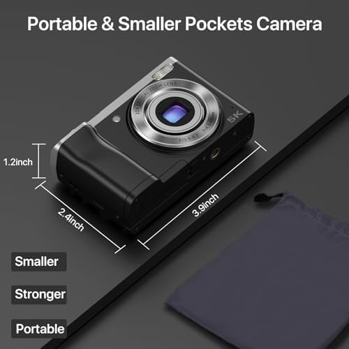 56MP 5K Digital Camera 10X Optical Zoom, Front and Rear Dual Cameras with 2.8″ I…