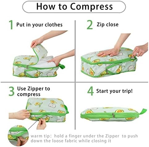 Multi-Functional Compression Packing Cubes: Lightweight, waterproof, portable, foldable, easy to store, suitable for most airlines’carry-on luggage, handbags, weekend backpacks, duffel bags, etc., perfect for family vacations, business travel, holidays, hiking, camping, RVing, and traveling.