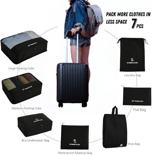7 Pcs Set Travel Packing Cubes for Suitcases | Compression Packing Cubes for Lug…