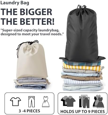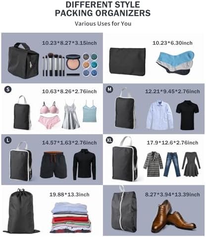 【8-Piece Set for Organized Travel】: Packing cubes for travel compression set includes 4 compression packing cubes for carry on (XL+L+M+S), along with 1 underwear pouch, 1 laundry bag, 1 shoe bag, and 1 toiletry bag – catering to all your travel needs. Effortlessly organize everything from jackets to socks with dedicated packing cubes.