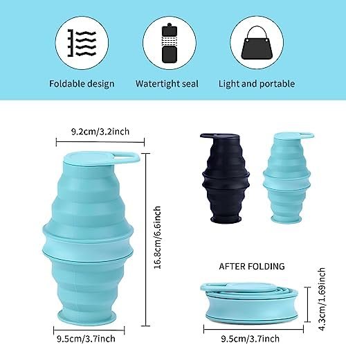 ABSOK 2 Pcs Collapsible Water Bottle, 500ml Foldable Silicone Travel Water Bottl…