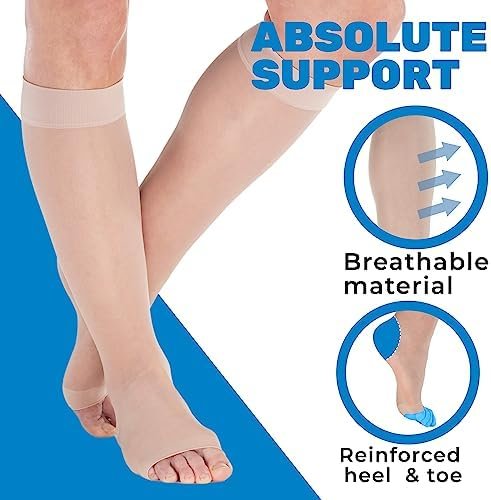 ABSOLUTE SUPPORT Sheer Compression Socks 15-20mmHg for Women Travel, Fly – Open …