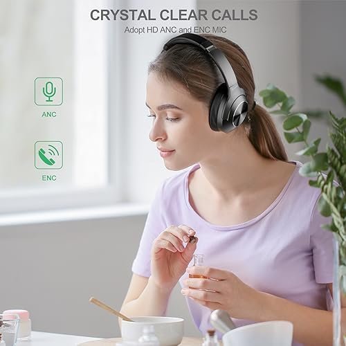 🎧【All-day Comfort & Adjustable Design- Noise Cancelling Headphones】Designed for extended wear, our ANC Bluetooth headphones feature plush ear cushions and an adjustable headband for a customized and comfortable fit throughout the day. Designed with ergonomic ear cups and adjustable headbands, a comfortable fit for extended listening sessions, allowing you to indulge in music without any discomfort.Over-Ear headphones have ultra-soft protein leather ear paps with memory foam padding and super-soft,pressure-relieving ear pads to rest gently and firmly fit your ears.(Note: Turn off the ANC function to avoid electricity consumption if you not use wireless headphones)