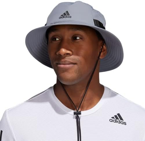 Keep covered on sunny days in this men’s adidas bucket hat. Engineered perforations keep the air flowing to help you stay cool and dry. An adjustable chin strap lets you personalize the fit.