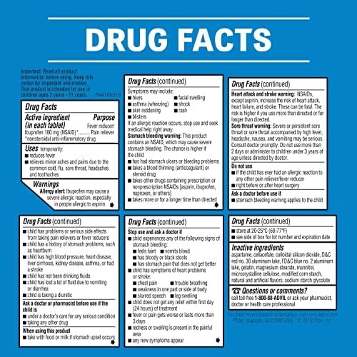Nothing fights fever faster or longer (1) than Advil Junior Strength chewable ibuprofen pain reliever and fever reducer. In just one dose, this kids chewable ibuprofen reduces fever and relieves minor aches and pains due to the common cold, headache or teething. Formulated for children ages 2 to 11 years, the chewable Advil for kids contains ibuprofen 100mg, a pain medication that also controls fever. Just one dose of this children’s ibuprofen pain relief medicine lasts up to eight hours, meaning few doses for your child throughout the day. Kids Advil junior ibuprofen pain medicine tablets are portable and easy for kids to take-no dosing cup or water needed. The pain medicine in Advil Junior Strength is the number 1 pediatrician-recommended active ingredient in a fever reducer/pain reliever. Conquer the back to school season with Advil, your ultimate ally against the common cold! (1) Among non-prescription analgesics