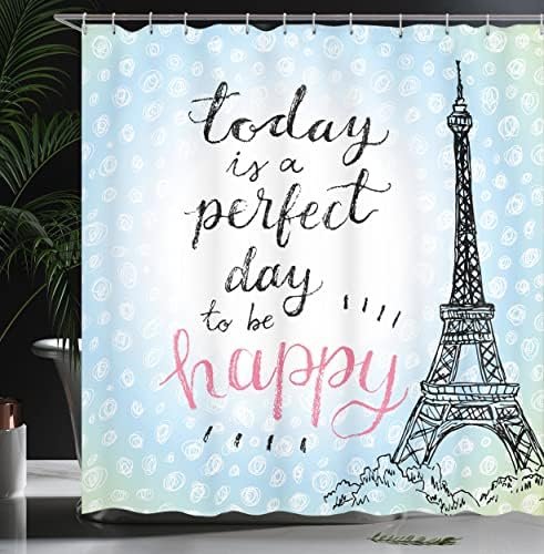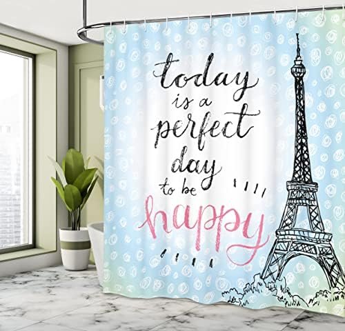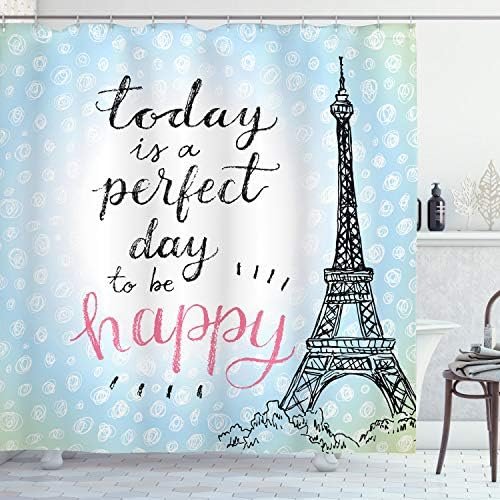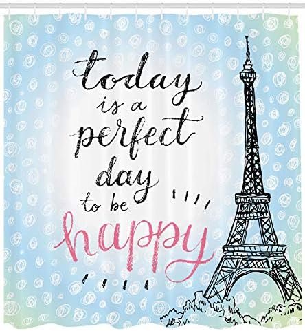 Ambesonne Eiffel Tower Shower Curtain, Perfect Day Eiffel Tower Polka Dot Handwr…