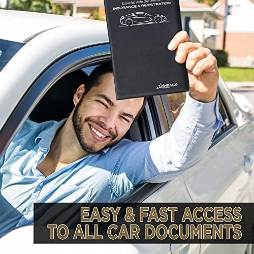 [Efficient Design with Multiple Pockets & Compact Size]: Andalus compact vertical black car registration holder (9.5″ x 5.15″), pack of 2 easily fits in your vehicle’s glove box, ensuring quick access to essential papers. With 4 sleeves for organized storage, it’s slim and lightweight, fitting seamlessly in any glovebox or console