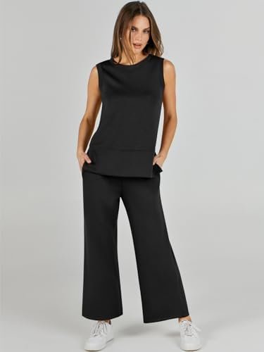 ANRABESS Women’s 2 Piece Sets Summer Outfits Sleeveless Wide Leg Tracksuits Casu…
