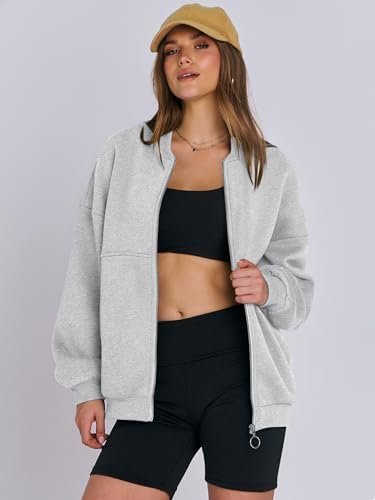 ANRABESS Women’s Zip up Oversized Sweatshirts Fleece jacket Coat Long Sleeve Cas…