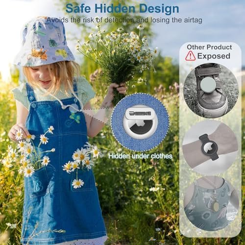 【Safe Hidden Design】This airtag case is not like other exposed airtag bracelet for kids, the pin design makes it easy to use on any clothing, it can be well hidden under the clothes to prevent the Airtag from being lost and also protect your child from potential dangers.