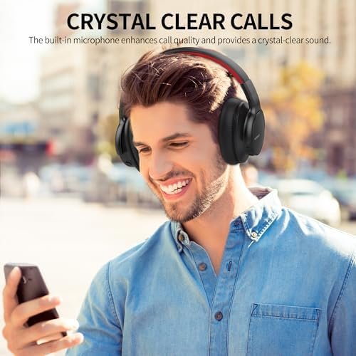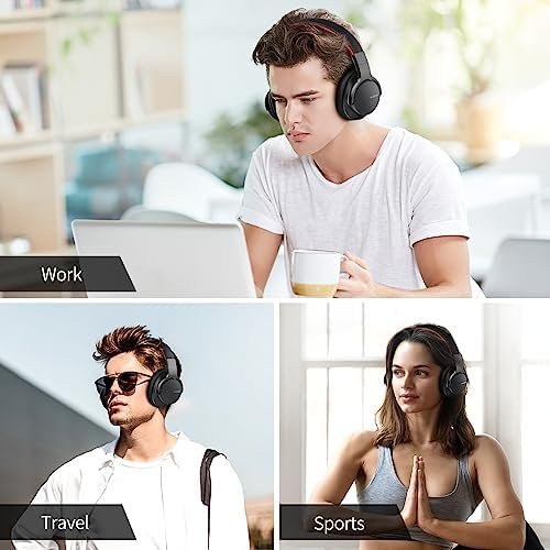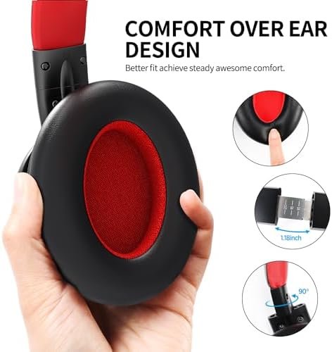 🎧All-Day Comfort Design: Super soft memory foam ear cushions ensure outstanding comfort, adjustable headband and durable 90° angled-swivel earcups to find your perfect fit, making the Bluetooth over-the-ear headphones ideal for all-day comfort, giving you a comfortable experience for long listening sessions