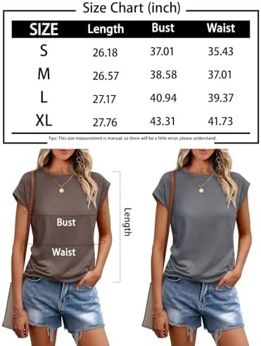 AUTOMET Womens Tops Casual Dressy Basic T Shirts Loose Fit Crewneck Cap Sleeve T…