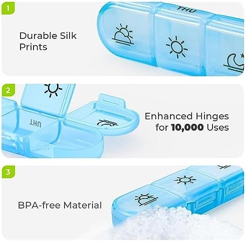 Trusted Quality: The BPA-free vitamin organizer with reinforced shell and inner hinges and silk prints can be used 20,000 times. The solid quality can withstand the test of time and provide you with over 10 years of use.