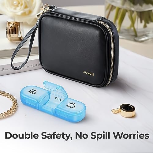 AUVON Weekly Pill Organizer 3 Times a Day, Large Pill Box 7 Day with A PU Leathe…