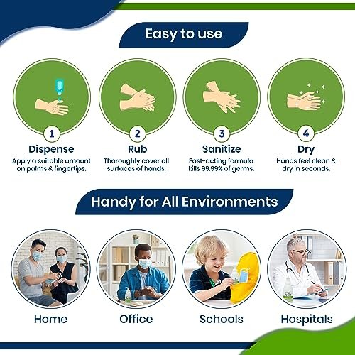 HOW TO USE: 1. Dispense an appropriate amount of sanitizer for the size of the hand. Apply it to the palms and fingertips area. 2. Rub both hands together and cover all surfaces. 3. Ready to use when hands feel dry.