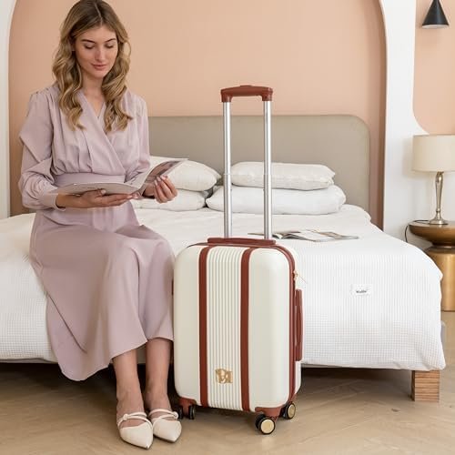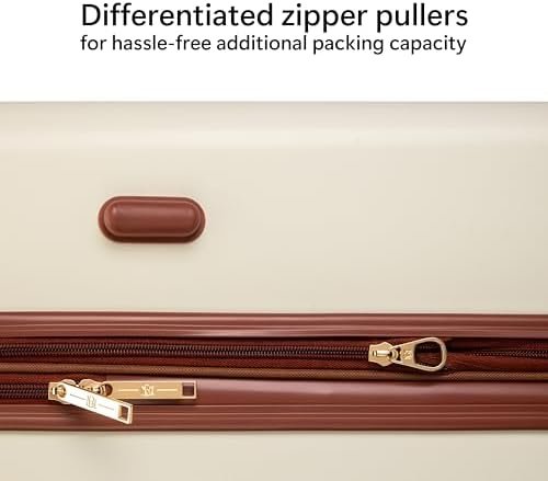 This stylish Mia trunk expandable spinner luggage set will become your favorite travel go-to. Gold details and vegan leather stripes accentuate its striped split case that is elegant yet practical for maximum performance.