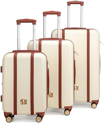 Badgley Mischka Mia 3-Piece Expandable Polycarbonate-ABS Retro Luggage Set (Cham…