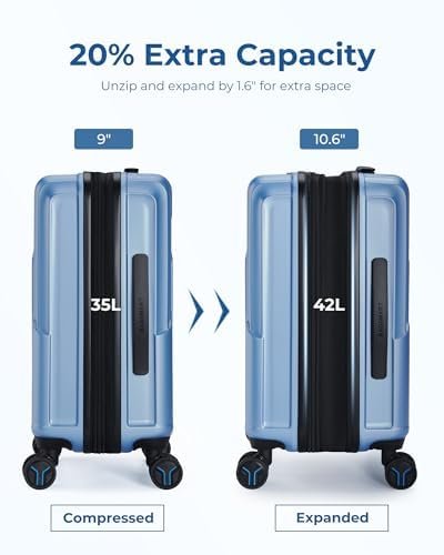20% Expansion, Pack More: Our expandable luggage meets diversified travel needs, Expandable design adds 20% extra pack space, With 42L (35L+7L) capacity, say goodbye to crowded travel and enjoy a comfortable journey.