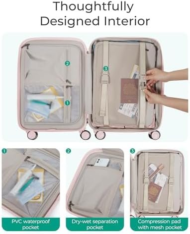 Ultimate Organizational Efficiency: Our carry on luggage 22x14x9 airline approved is engineered for effortless organization with multiple compartments and pockets. Featuring a thoughtful interior layout and side-mounted TSA-approved locks, it ensures smooth and hassle-free airline baggage screening. From toiletries in the waterproof compartment to privacy in the U-frame zippered section, every item has its place, making packing and travel seamless.