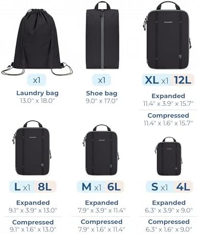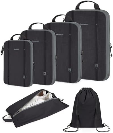 Multiple Sizes, Versatile Use – With 6 PCS of BAGSMART travel organizer bags, keep your items separate and easily accessible. The XL cube is perfect for jackets and sweaters, the Large cube for jeans or pants, the Medium cube for shirts and blouses, and the Small one is for underwear. A shoe bag and a drawstring can be used as a laundry bag to separate dirty/wet clothes or shoes