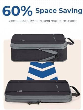 60% Space Saving – BAGSMART Compression Packing Cubes are specifically designed to save space in your suitcase by compressing your clothes and belongings, allowing you to fit more items in a limited space. Packing more while keeping everything organized. No more rummaging through your suitcase to find that one item buried at the bottom