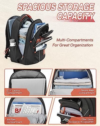 【Large Capacity & Multi Pockets】This women’s extra large traveling backpack has a capacity of 45L and is designed specifically for travel, business, and daily use. The ladies bookbag comes with 9 zipper pocket, size up to 17.3 ” laptop company, room main company, A4 files company, sunglasses pocket, outer hand pocket, front zipper pocket, two side drawstring pockets, and a back hidden pocket. The backpack is used to store clothes, cosmetics, toiletries, shoes, and other travel accessories