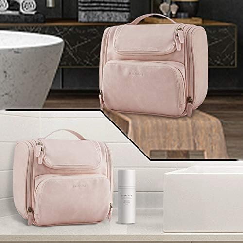 BAGSMART Travel Toiletry Bag, Leather Toiletry Bag with Hanging Hook, Water-resi…