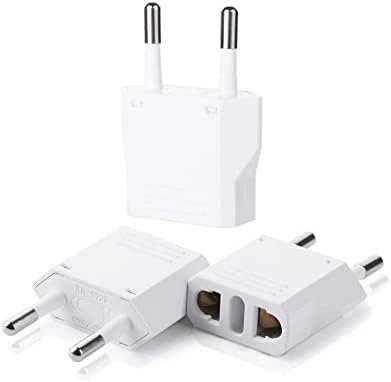 Bates European plug adapter set includes 3 pieces, designed to enable the use of American-style plugs in European outlets, perfect for travelers or those with electronic devices from the US.