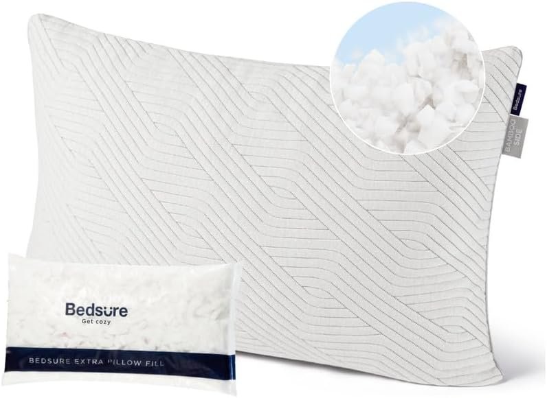 Bedsure Shredded Memory Foam Pillows – Cooling Pillows, Firm Side Sleeper Pillow…