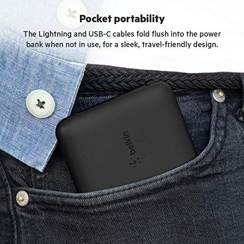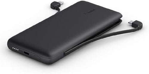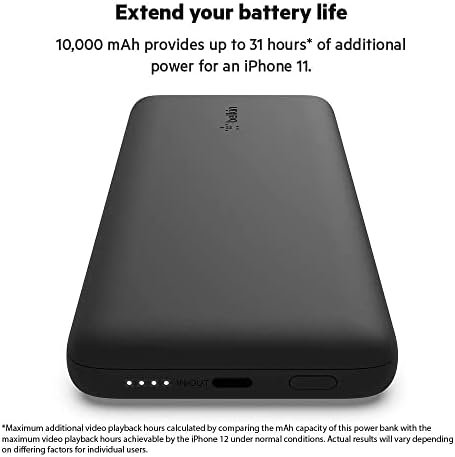 The Belkin BoostCharge Plus Portable Charger Power Bank is the perfect way to charge your smartphones and tablets on-the-go. The BoostCharge 10k mAh portable charger features a built-in lightning cable (MFi) and USB-C cable so you can recharge your favorite devices without having to worry about separate cables. The convenience doesn’t stop there, because Belkin BoostCharge Plus also supports pass-through charging*, which allows you to charge both your power bank and connected device at the same time with up to 18W. With a super high capacity of 10,000 mAh, the battery pack can keep your devices charged all day. And you will always know when your power bank needs to be charged, with the onboard LED indicator light quickly and easily displaying the battery status of your portable charger. *Pass-through charging of the portable charger is supported when the power bank is above 25% charge.**Maximum additional video playback hours calculated by comparing the mAh capacity of this power bank with the maximum video playback hours achievable by the iPhone 12 under normal conditions. Actual results will vary depending on differing factors for individual users.