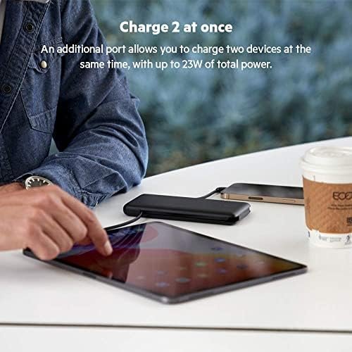 23W OUTPUT LETS YOU CONVENIENTLY CHARGE 2 DEVICES AT ONCE: This power bank can charge two devices at the same time with up to 23W of total output using the integrated iPhone cable and USB Type C cable.