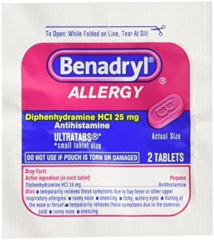 Benadryl 25/2s Display Box 25 Packets of 2 Pills, For Fever