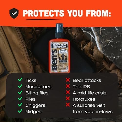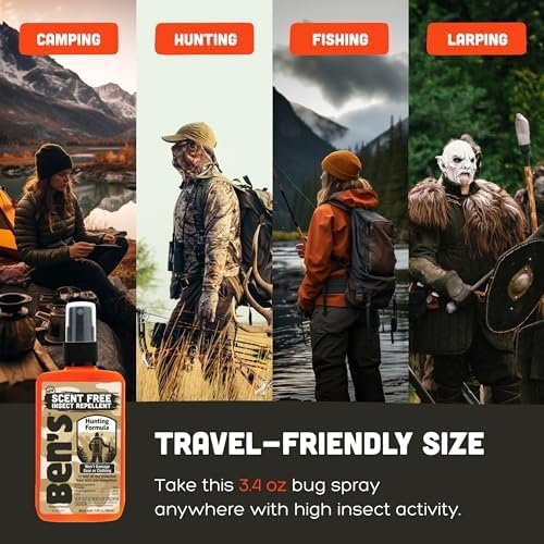 Gear-Friendly & Scent-Free Spray: Apply Ben’s bug spray without fear of damage to your outdoor gear and apparel; its scent-free formula allows you to stay camouflaged during hunting or fishing trips