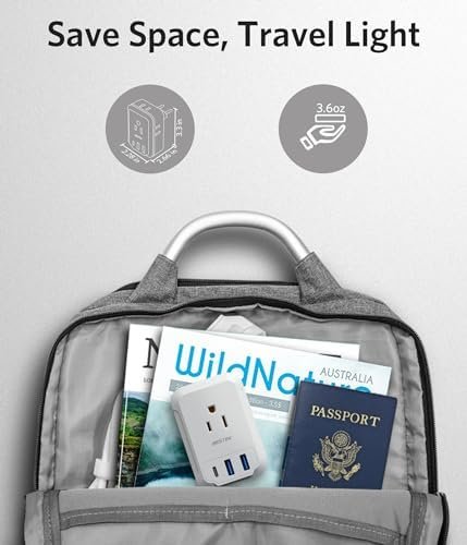 7 in 1 European Adapter: This power converter US to Europe combines 4 AC outlets and 3 USB charging ports, allows you to charge 7 electronics simultaneously; Larger space makes power adapter Europe easier to fit all electric equipment without blocking; No need to carry extra adapter.