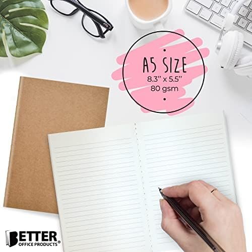 Better Office Products Kraft Notebooks with Lined Paper, Bulk Pack 8.3 in x 5.5 …