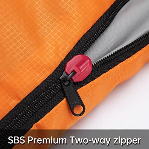 【2-Way Zipper】: Sleeping bag using SBS two-way zipper,Smooth to use, fabric does not easily roll into the zipper, and a separated zipper at the bottom for temperature control.